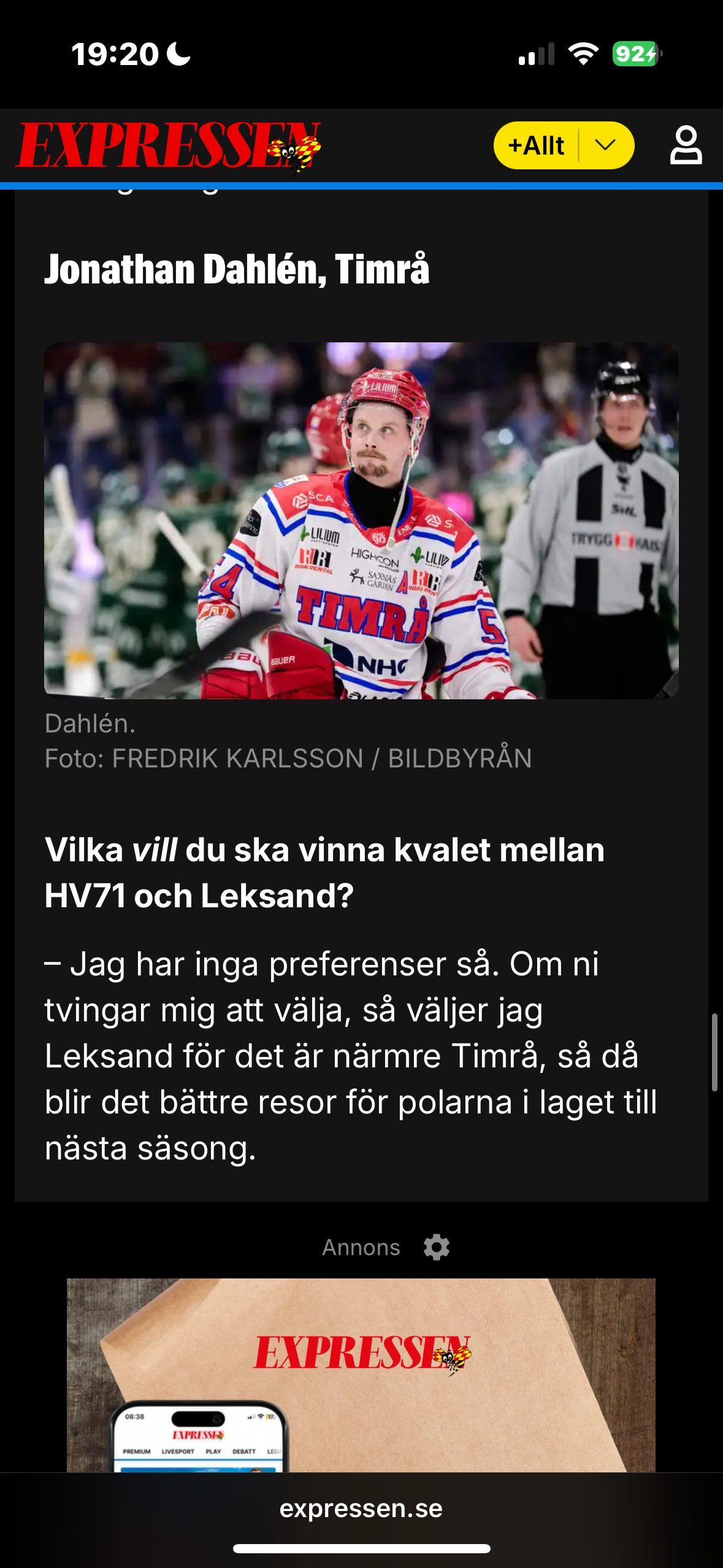 Jag gissar att Dahlén faktiskt har ett Timrå-hjärta. Nu. Men det kändes initialt väldigt påklistrat. Och en efterhandskonstruktion deluxe.