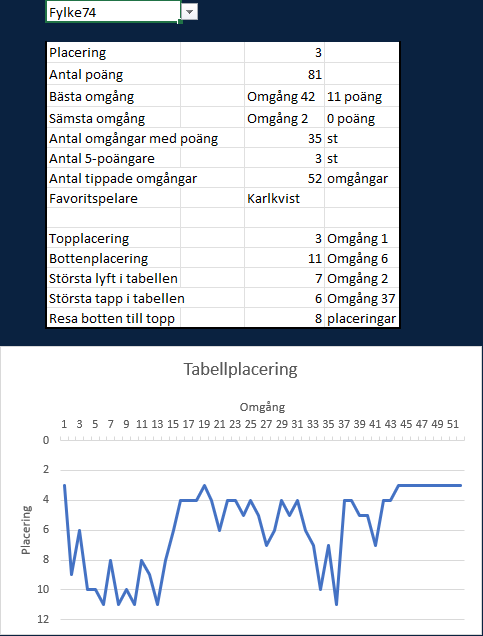 Jag har fixat och trixat lite i mitt Excel-ark så varje tippare har en sån här. Vill ni så kan jag lägga upp samtliga här på forumet.