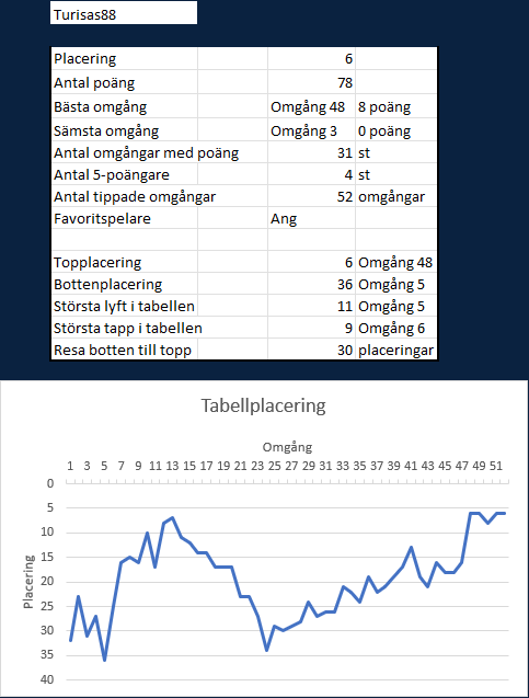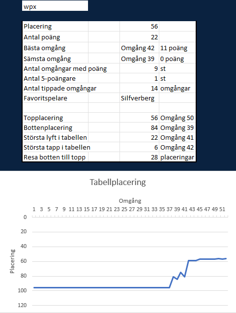 Jag hade gärna viljat se min statistik också , då det känna som jag klättrat otroligt mycket i slutet av säsongen
