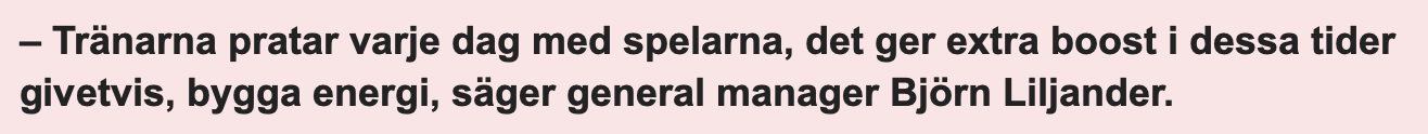 Men ärligt talat. Vad är det här för konstigt citat i ingressen? Tränare pratar väl i princip varje dag med spelarna under säsongen? Jag får så konstiga utomjordingar-vibbar av det här. Det är som om George Lucas skrivit deras manus.