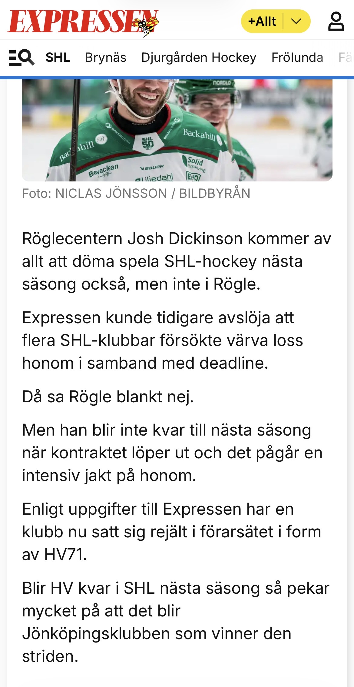 Kritat på nytt kontrakt, men har inte velat säga om det gäller i allsvenskan. Det får mig att ana ugglor i mossen. Gäller bara kontraktet i SHL. Om så är fallet lär OSL inte bli kvar.