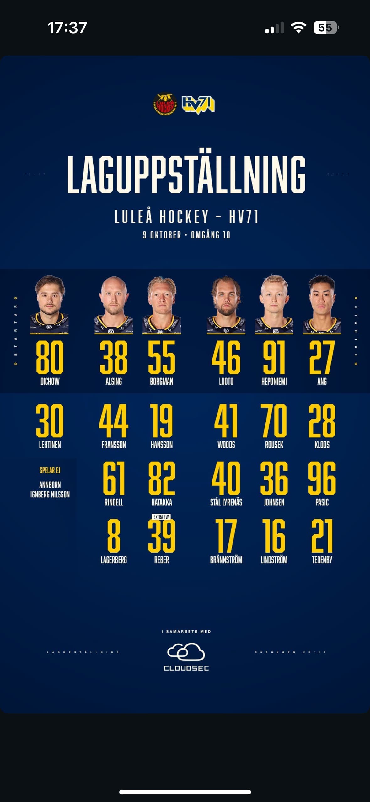 Angående kvällens match. Nä givetvis vinner vi inte. När vann vi senast mot Luleå borta?