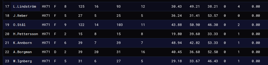 Han och Lindström som har sämst siffror av alla med lite istid.