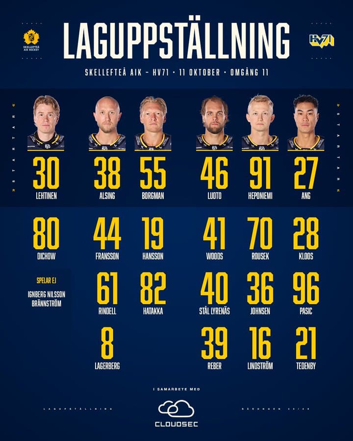 HV har ändå börjat få lite medstudsar med sig. Tänker på de som borde varit mål mot Luleå och Leksand. De betyder ju skicklighet och idag får Lassi sin chans att göra comeback!