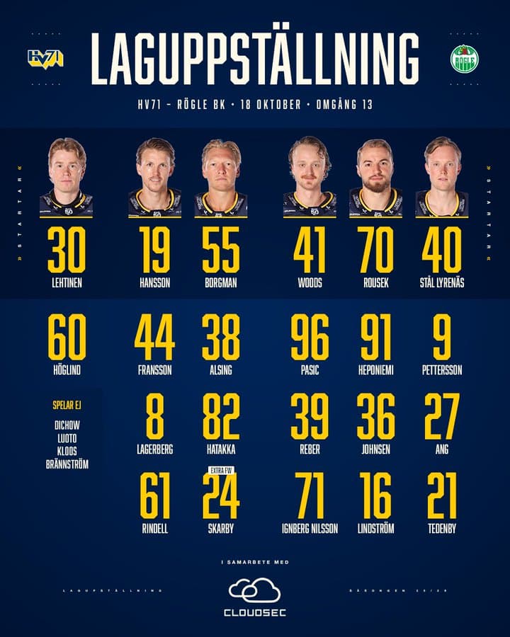 Det som är oroväckande, utöver de spelartapp vi har, är att det är två lag med helt olika formkurvor. HV71 hade sin topp på ispremiären och har därefter bara blivit sämre och sämre. Rögle däremot har börjat hitta rätt i alla delar och blir bara bättre och bättre. Av det jag sett av Rögle så har de ett komplett lag. Man adderade Calvin de Haan, med närmare 700 NHL-matcher på sitt cv, som inte gjort ett enda misstag. Utöver detta har man kanske seriens bästa målvaktpar, en nu mer eller mindre komplett backsida och fyra kedjor som alla hade gått in som första kedja i HV71. Inte mycket som talar för HV71 idag.