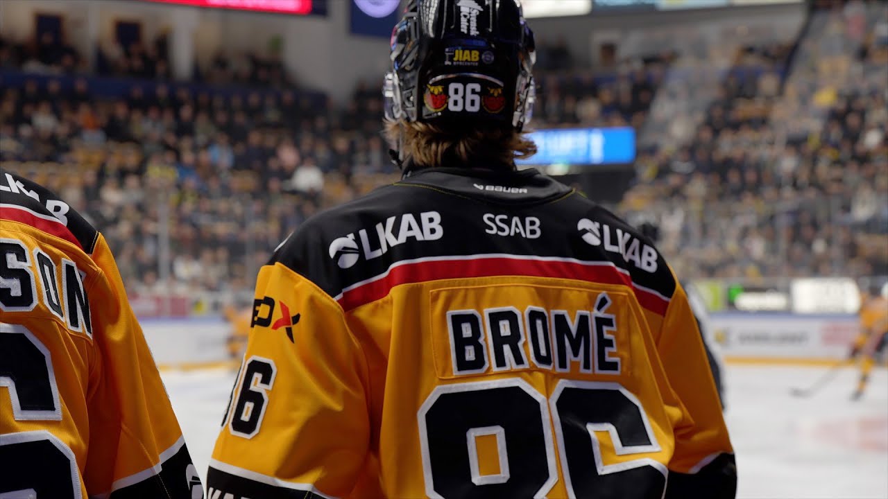 Deras skridskor krockar ju precis innan pucken far mot Bromés skridsko, så han får ju en spark på sin skridsko av HV-spelaren, tyvärr.