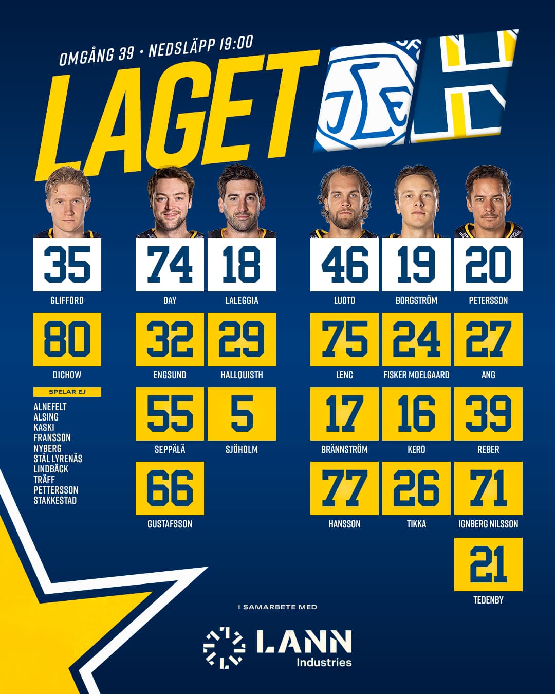 Enda förändringen idag är alltså att Glifford kliver in mellan stolparna. Detta pga skada på alnefelt.