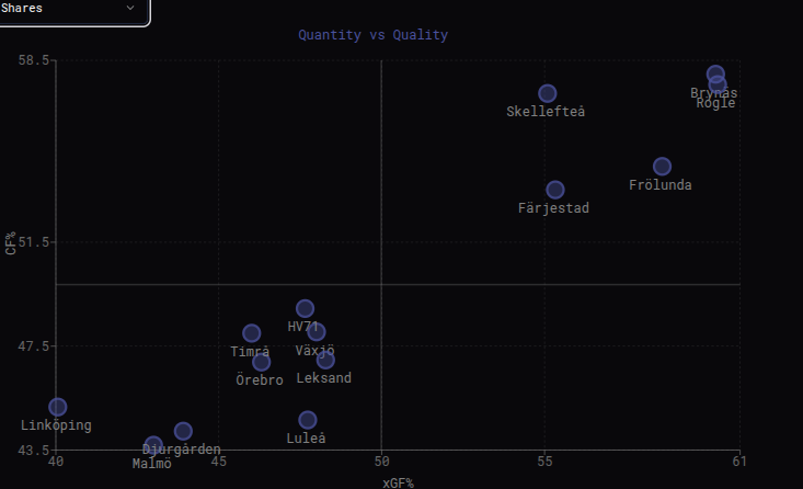 Men vad baseras det där på, för inget av det visar sig ju på isen! Man gör ju inte mål, man skapar ju knappt några målchanser, man skjuter jävligt få skott, osv., så hur kan det se ut så där?
