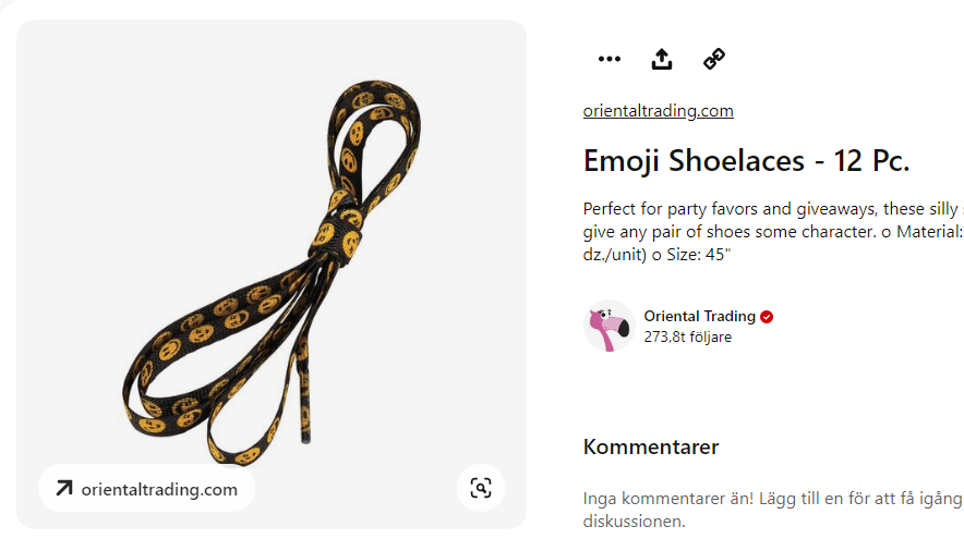 Söker man på emojis och letar efter ord som “snöre” får man översätta till engelskan. Där har vi string och thread som ligger nära ordet snöre. Söker man på det får man nedan emoji.