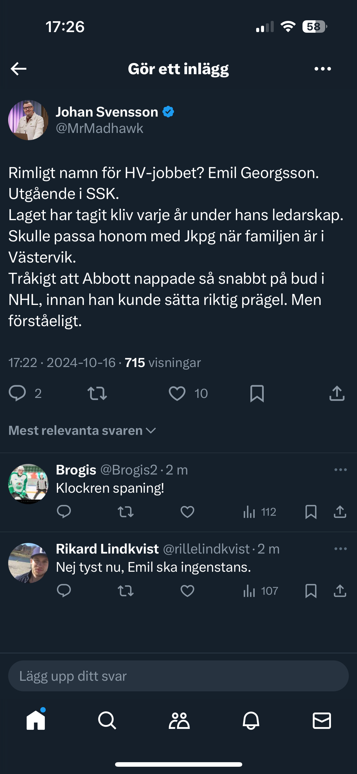 Nu när Carolina snor Abbott ifrån oss så kan de väl skicka två bra spelare i utbyte. Nää, fyfan vad trött man blir på det här. Jävla kaosförening. Det var väl det sista Hv behövde känner jag, men han är ju kvar till våren iallafall. Får hoppas att Abbott ändå sitter på ngn riktig juvel i form av en riktig klasscenter. Väldigt få rykten om spelare.