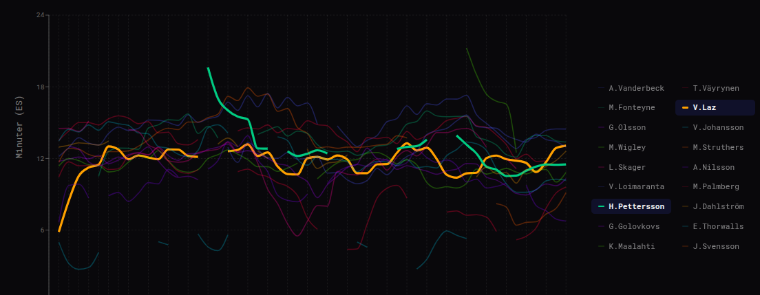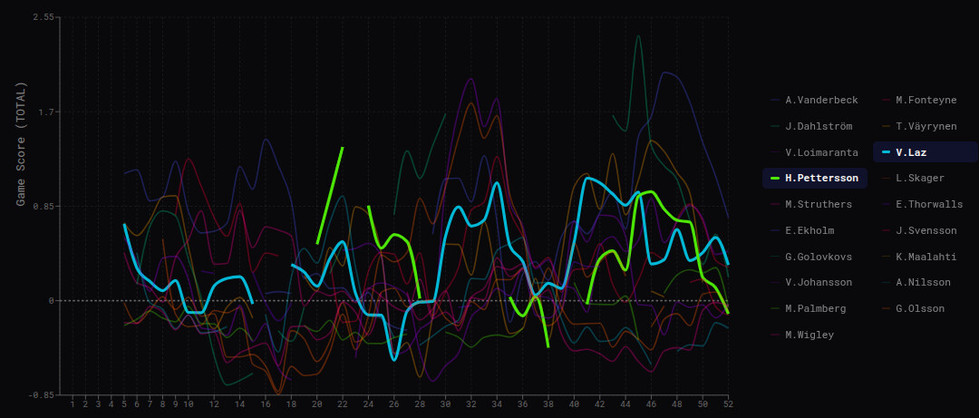 Ettan: 187 matcher, 112p. I slutspel, 43 matcher och 14p så klev ju inte fram när det gällde heller.