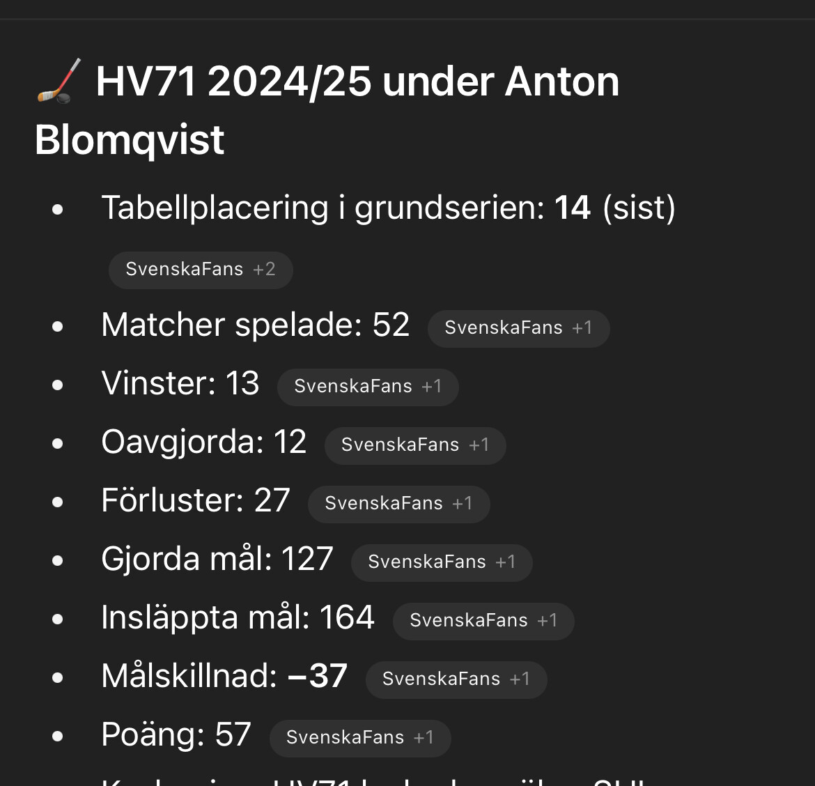Well, jag kan väl inget om hockey. Den där pratkvarnen skulle ha fått gå innan Jul förra året.