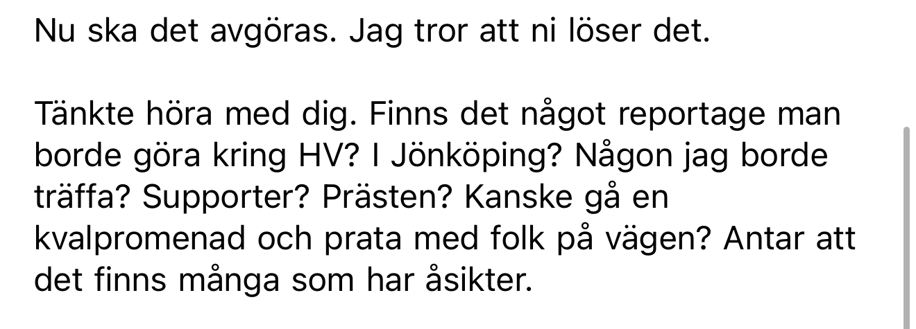 Vet inte vart rätt tråd för detta är men jag skulle önska att HV tog in några utifrån som kan göra en grundlig undersökning av vad som gått snett senaste åren. Det ska inte vara personer med kopplingar till klubben utan göra en ordentlig utredning, intervjuer med fd spelare som AP, Strålman m.m.