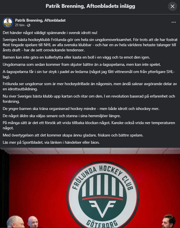 Handlar väl egentligen inte om SHL men då Frölunda är ett SHL lag och jag inte hittade någon passande tråd så postar jag det här.